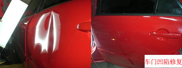 目前汽車無痕凹陷修復(fù)技術(shù)在大城市比較常見,這種技術(shù)一般適用于中高端汽車,還有很大一部分車主思想比較守舊,不愿意嘗試和相信汽車凹陷修復(fù)技術(shù)!下面請看一下汽車凹陷修復(fù)前后比對圖: