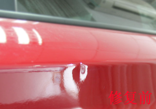 一次開車小事故讓紅色寶馬車身兩處凹陷,分別位于車門和翼子板,凹陷都不是很大,但是要鈑金修復(fù)肯定得破壞掉整個(gè)車門和葉子板的原車漆,車主很是糾結(jié),不修看著難受,噴漆又心疼車!當(dāng)?shù)弥什ぬ}可以無痕修復(fù)汽車凹陷時(shí),他欣喜若狂!