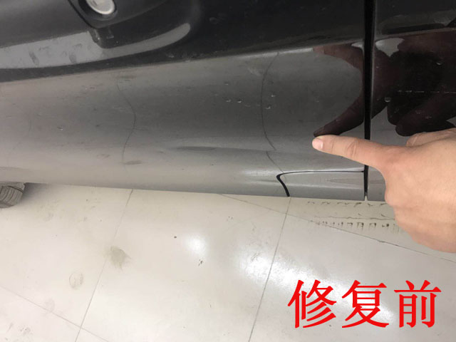 上圖中奔馳威霆車們凹陷嚴(yán)重影響了車身整體的美感和動(dòng)感!不過(guò)好在原車漆并沒(méi)有受損,如果采用鈑金噴漆修復(fù)的話,不僅要?dú)У粽麄€(gè)車門的原車漆,并且整個(gè)車門噴漆價(jià)格在4S店怎么也得上千塊吧!而且還要把車放在4S店好幾天,耽誤車主用車,如此看來(lái)選擇利用汽車凹陷修復(fù)技術(shù)修復(fù)更為劃算!
