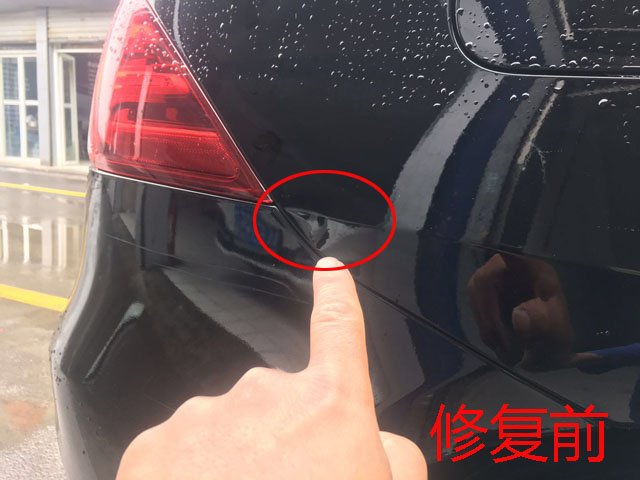 汽車凹陷修復過程主要是利用杠桿工具從車身內(nèi)部,進行擠壓按摩車身,將凹陷細化,直至凹陷完全融入車漆,看不處任何凹陷過的痕跡。而奔馳汽車凹陷發(fā)生在右后翼子板邊緣處,并且凹陷處在棱線位置,修復起來是雙重難度。因為車主強烈要求保留原車漆,所以我們決定將后尾燈拆卸后再修復,這樣可以降低修復難度,并且修復效果也會達到最佳!為了保留原車漆,車主還是很爽快的答應了。我們的汽車凹陷修復師傅從業(yè)近十年,對每種車型的內(nèi)部結構都很了解,所以拆卸大燈對他來說也是小菜一碟,當然也非常感謝奔馳車主的信任!