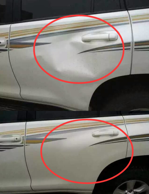 1:汽車凹陷修復(fù)技術(shù)差的技師修復(fù)出來(lái)的凹陷從正面可以看出來(lái)小 點(diǎn)點(diǎn)。從側(cè)面可以看出來(lái)凹陷或有水紋。