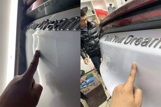 引擎蓋的凹陷對于修復(fù)效果是要求比較高的,因?yàn)槠崦娴拈倨み€有小凹坑在強(qiáng)光下都是非常顯......