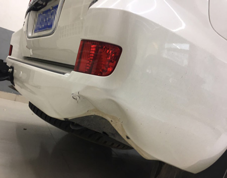 從圖中可以看出,豐田保險(xiǎn)杠凹陷變形比較嚴(yán)重,如果金屬車身部位發(fā)生這樣的凹陷,金屬被嚴(yán)重拉伸,一般都是無法修復(fù)的。由于保險(xiǎn)杠材質(zhì)的特殊性,其可塑性較強(qiáng),變形后在此處產(chǎn)生的應(yīng)力較小,比較容易修復(fù)!修復(fù)保險(xiǎn)杠凹陷與車身凹陷唯一不同的是,保險(xiǎn)杠凹陷修復(fù)需要借助熱風(fēng)槍對凹陷處進(jìn)行加熱,然后再借助汽車凹陷修復(fù)中的杠桿工具,進(jìn)行整形恢復(fù),直至凹陷處恢復(fù)到車子的原來狀態(tài)!