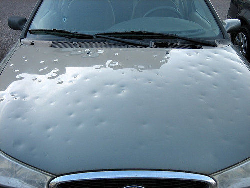 十多年前美國(guó)一場(chǎng)罕見的冰雹把幾千輛停放在露天等待轉(zhuǎn)運(yùn)的新車砸得傷痕累累。由于冰雹所造成的凹坑沒有損壞車漆,所以無需噴漆。如果按傳統(tǒng)工藝修復(fù),不僅費(fèi)時(shí)、費(fèi)力,而且價(jià)格相當(dāng)昂貴。當(dāng)時(shí)有人提出能不能不破壞原車漆面,把凹陷部位修復(fù)好?于是,汽車制造商找來數(shù)名汽車漆面、鈑金專家,經(jīng)過無數(shù)次實(shí)驗(yàn)和分析研究,最終實(shí)現(xiàn)了不破壞原車漆面就可使凹陷部位完全復(fù)原。就這樣汽車凹陷修復(fù)技術(shù)誕生了!
