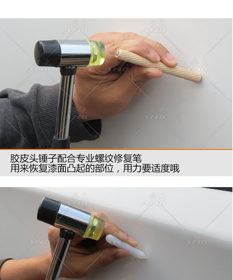 橡膠錘的作用的配合專業(yè)螺紋修復(fù)筆,用來回復(fù)漆面突起部位,細(xì)化汽車漆面的不平整。達(dá)到最終的完美修復(fù)!