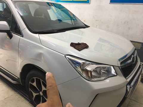 斯巴魯右前翼子板凹陷免噴漆修復(圖文)