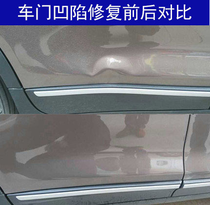 汽車凹陷后傳統(tǒng)的修復(fù)流程是鈑金、刮膩?zhàn)?、打磨、噴漆,但是這樣難免會損傷車身周圍車漆,所以往往因?yàn)橐稽c(diǎn)凹陷就會導(dǎo)致車身整個(gè)件重新噴漆!