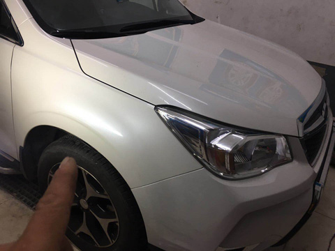 “你好,是濟(jì)南皇菠蘿嗎?我的車右前翼子板被撞凹出一個大坑,可以修復(fù)嗎?我想免噴漆無痕修復(fù)?”皇菠蘿一大早就接到斯巴魯車主的電話,又是奔著皇菠蘿的汽車凹陷修復(fù)技術(shù)來的,絕對沒問題。于是和車主約好了修車時間,他也按時到達(dá)了!