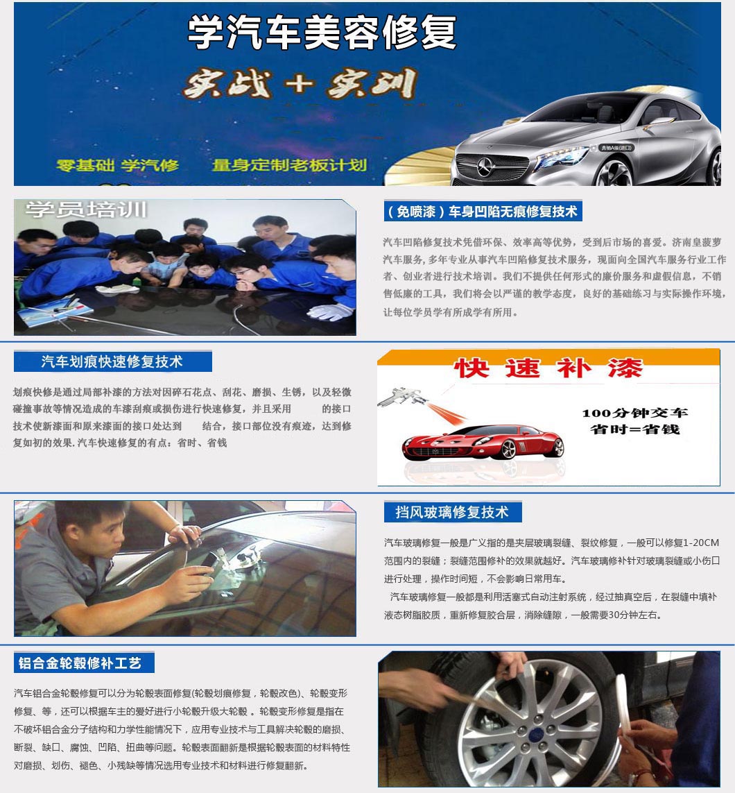 汽車凹陷修復(fù)培訓(xùn)、擋風(fēng)玻璃修復(fù)培訓(xùn)、汽車輪轂修復(fù)培訓(xùn)汽車美容項目培訓(xùn)